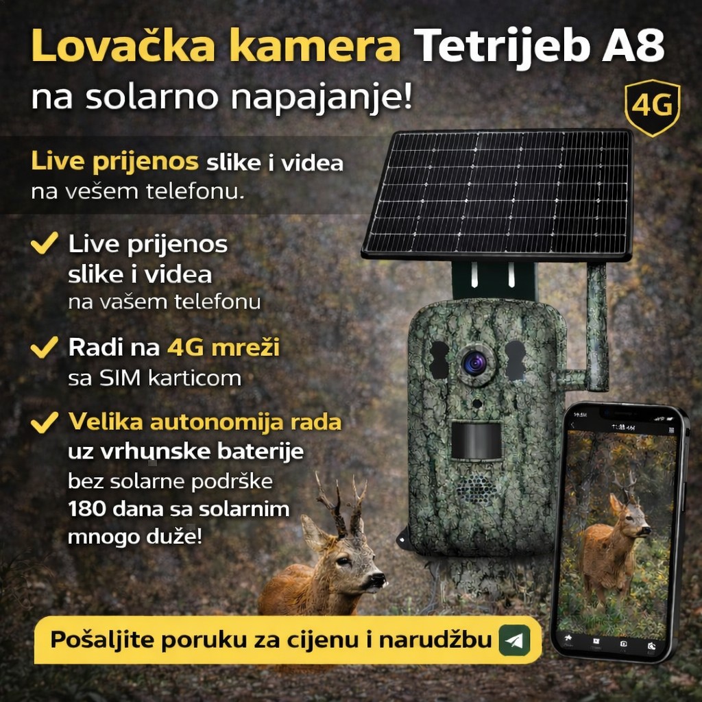 Nova Tetrijeb A8 lovačka kamera donosi vrhunsku tehnologiju za praćenje divljači i nadzor terena.